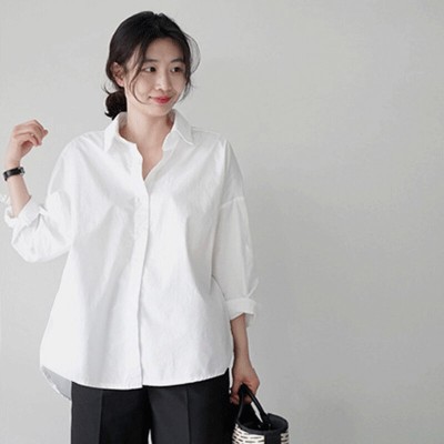 BS女式衬衫冰丝V领加大码衬衫宽松时尚休闲泡芙短袖套头衫