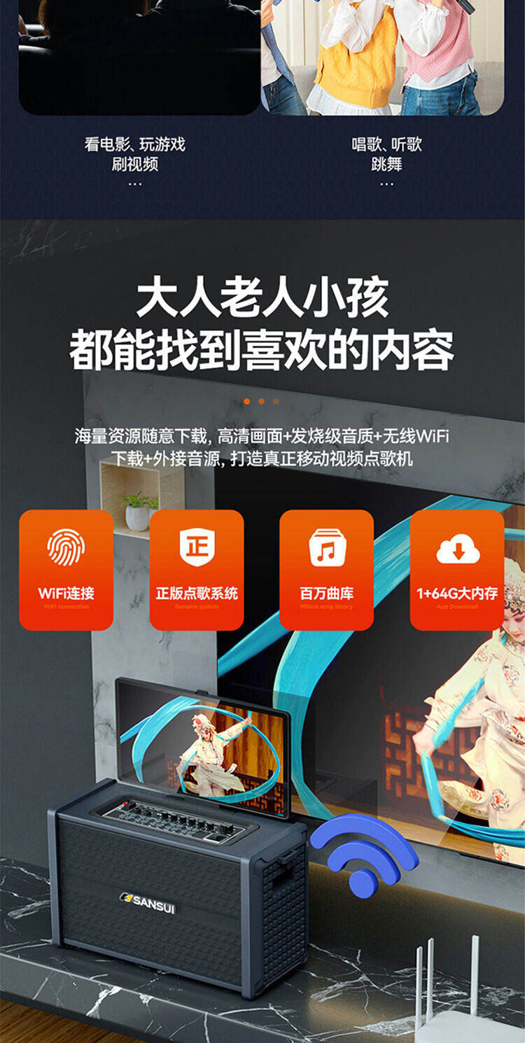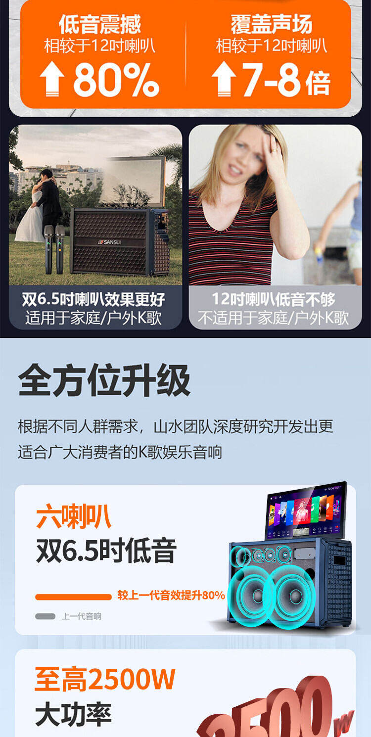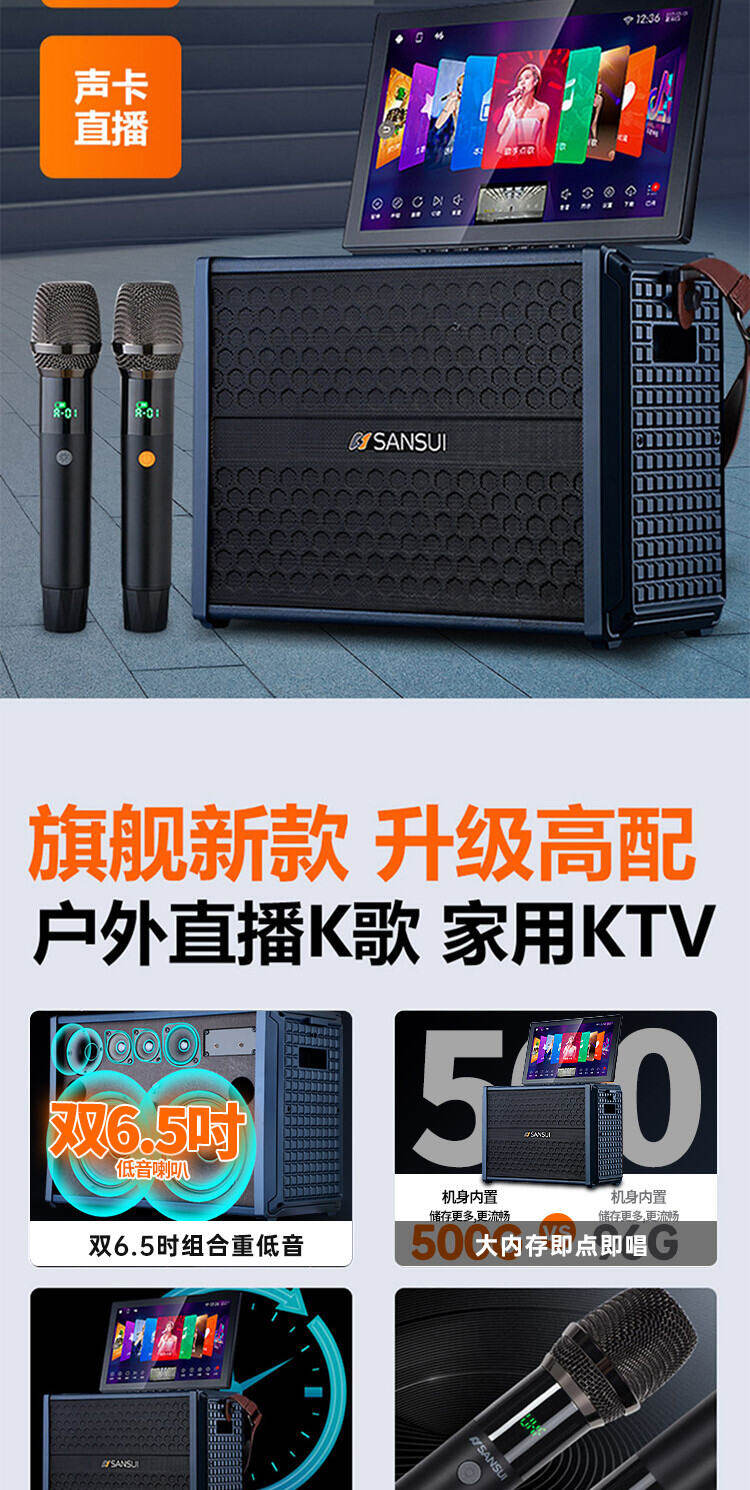 山水H2便携式大功率音响户外音箱卡拉OK家庭KTV套装卡拉OK播放器广场舞音响